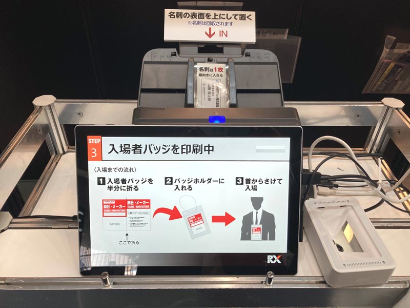 あら、りくつな~スキャンされた名刺が入場バッチに印刷されて出てきました。