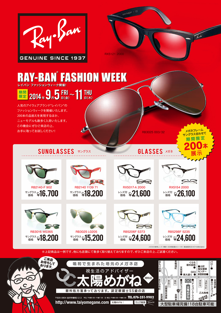 この度、太陽めがねでは「レイバン(Ray Ban)ファッションウイーク」を開催します!!