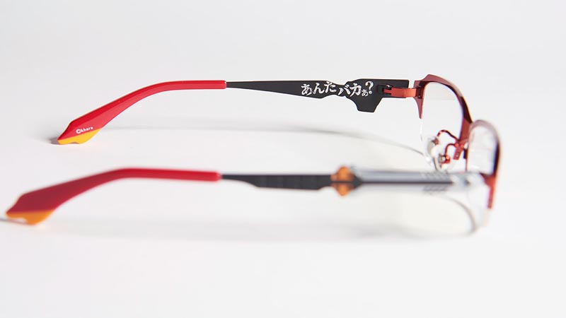 右テンプルはエヴァの胴体を表現し、左右非対称のテンプルとなっています。