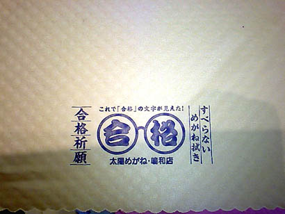 太陽めがねが企画した「合格祈願 すべらないめがね拭き」。