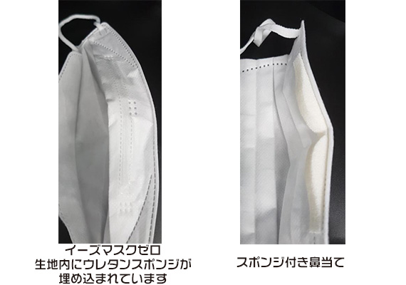 従来からあるスポンジで顔の正面から押さえつけるのではなく、鼻の傾斜に合わせて上からしっかり押さえるので、従来品と比較して圧倒的に曇りません。