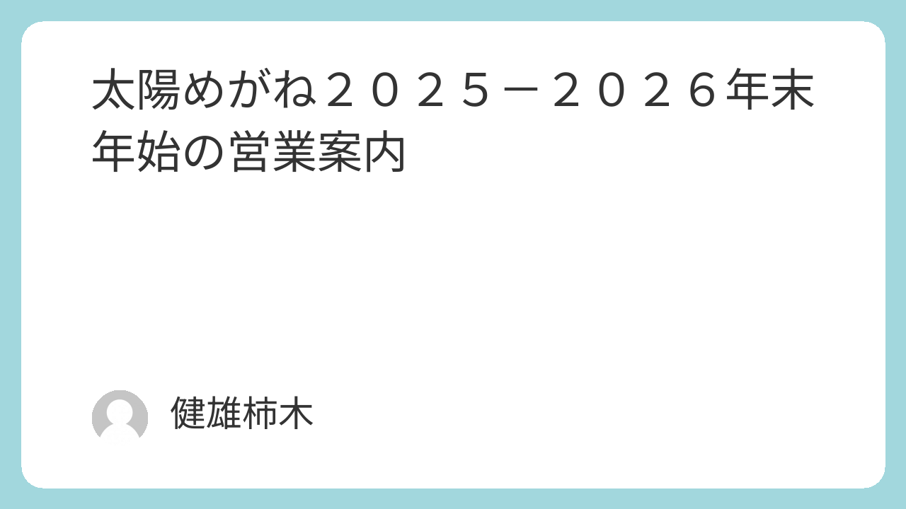 今年も大変お世話になりました。 太陽めがね2025-2026年末年始の営業案内についてお知らせさせていただきます。