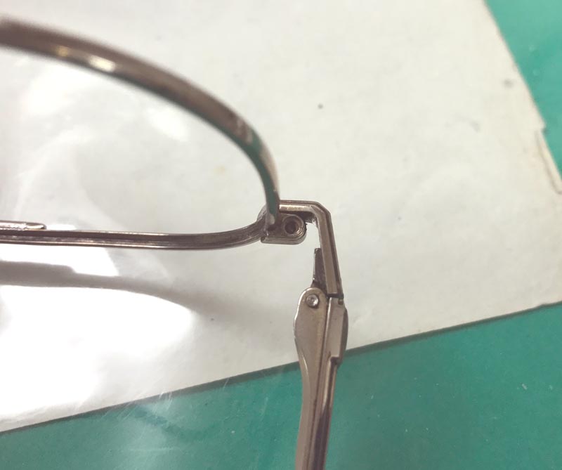 主に金属製のメガネの場合に多いのですが、レンズを留める場所、フロントと腕を繋ぐ場所、鼻パッドを留めている所などです。