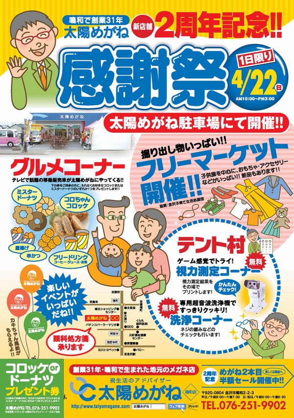 そこで、昨年も好評でした太陽めがね新店舗2周年感謝祭を今年も行います。