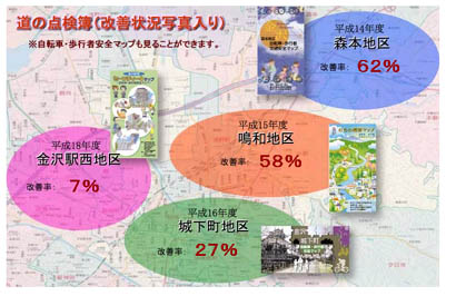 突然ですが、「道の点検簿」って知ってますか?何気なくネットを見ていたら、「道の点検簿」というページを発見。見ると、金沢河川国道事務所が市民団体(地球の友・金沢)、石川県警、石川県、金沢市、国土交通省金沢河川国道事務所が「子供たちの視点から道路の危険箇所を3年以内に改善しよう!」と取組んでいるものをマップ化し表示しているサイトだそうで。