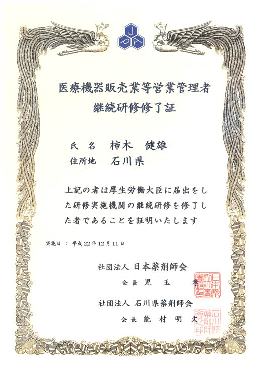 その高度管理医療機器の許可には営業管理者を店舗に配置する必要があり、かつ、この営業管理者は毎年継続的に研修を受ける必要があります。