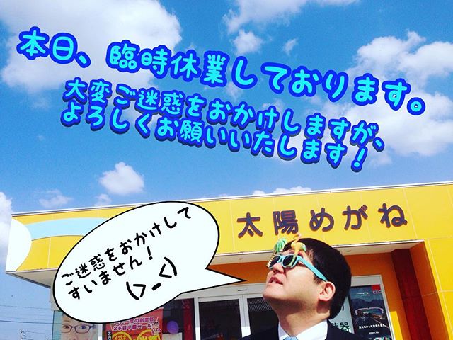 臨時休業のお知らせ!本日4月12日(水)は、お休みさせていただきます。#太陽めがね#臨時休業