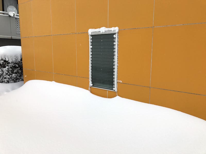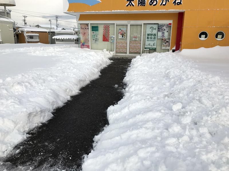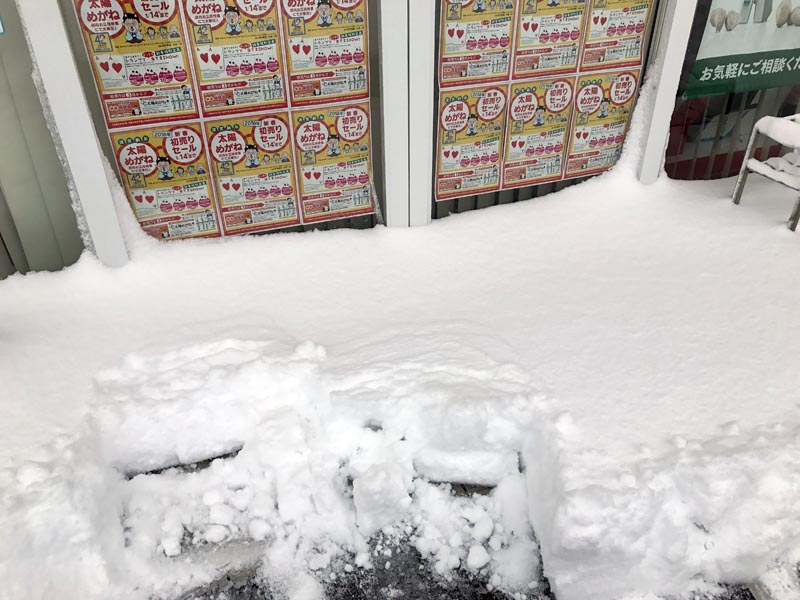 これ雪かきしないと、溶けて店内が浸水しちゃうよね・・