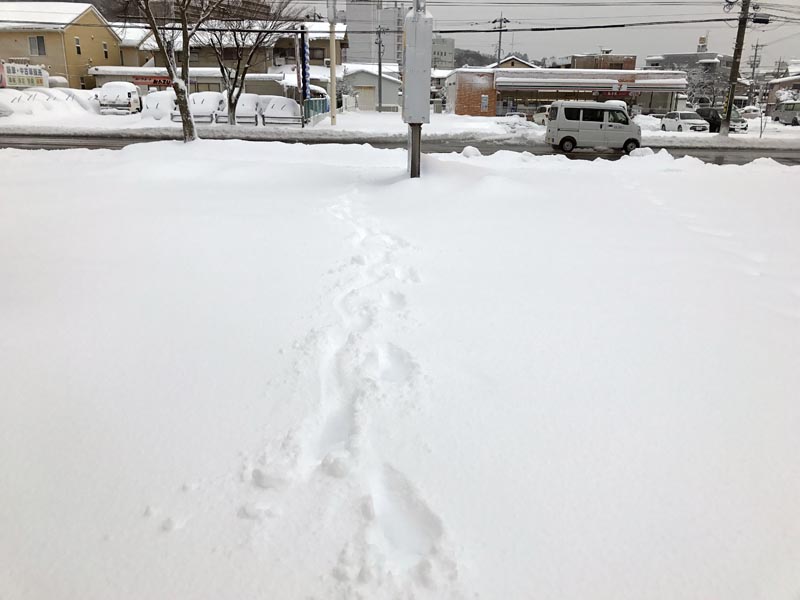 今回の雪は気温が低かったのでさわさらのパウダー状態。これがスキー場だったらどんなにうれしかったか!